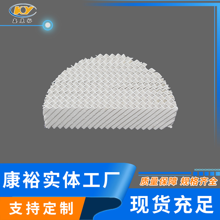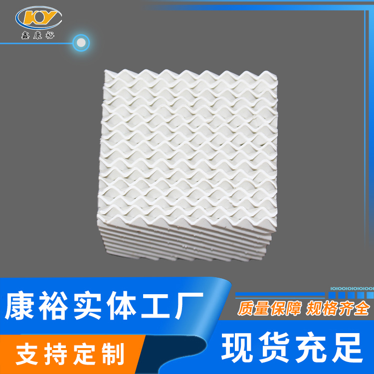 陶瓷波紋填料是一種新型規整填料,它是由許多具有相同幾何形狀的填料單元體組成。由于陶瓷的結構,具有良好的親水性能,其表面可形成極薄的液膜的湍動及氣流的傾斜曲折通道能氣流但又不阻擋氣流使陶瓷填料能與金屬填料相匹敵,而其耐腐蝕、耐高溫性能金屬填料卻無法相比。表面結構有良好的濕潤性能,能使液體加快流動、使填料滯液量降至低。從而降低了過熱、聚合和結焦的機會。
