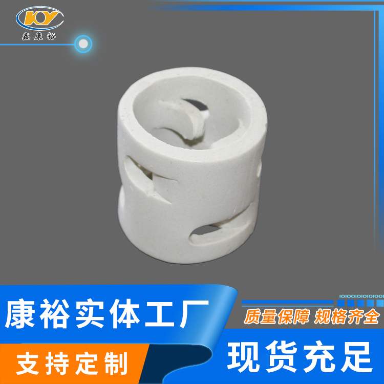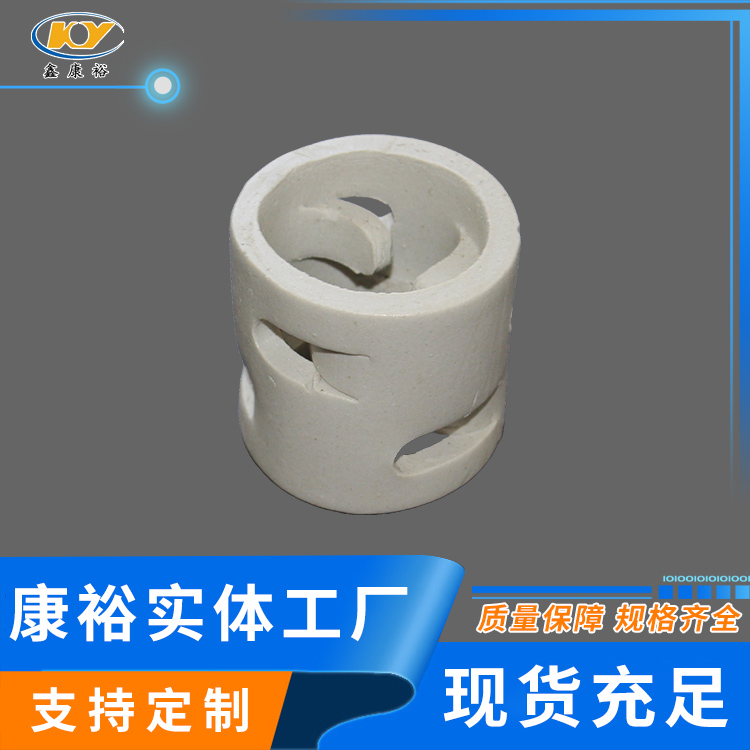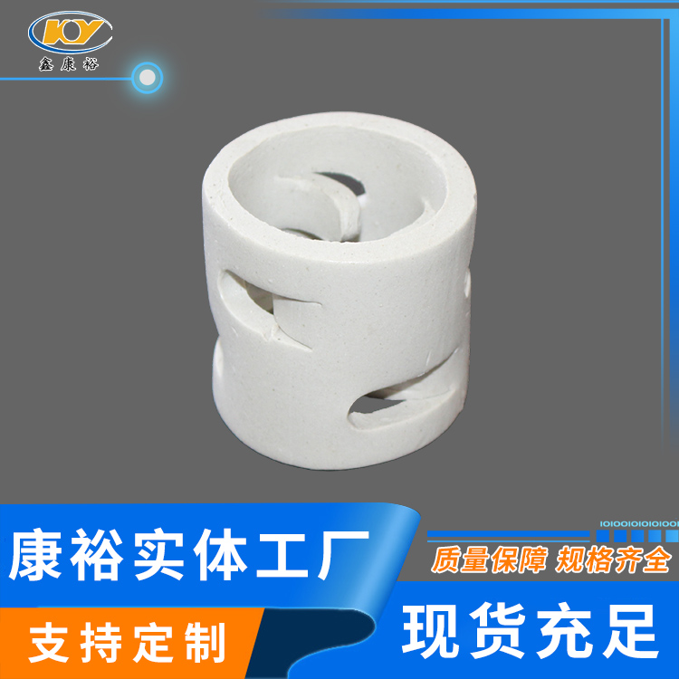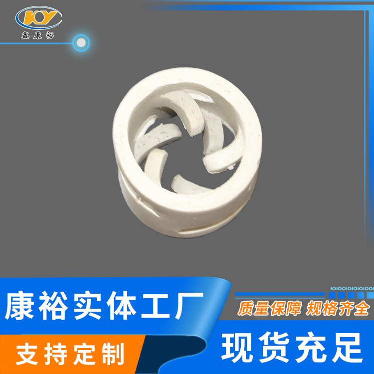 康裕陶瓷鮑爾環(huán)填料是一種高徑相等的開孔環(huán)型填料,每層窗孔有5個舌葉,每個舌葉內彎指向環(huán)心,上下兩層窗孔的位置相反錯開,一般開孔面積約占環(huán)壁總面積的30%左右。