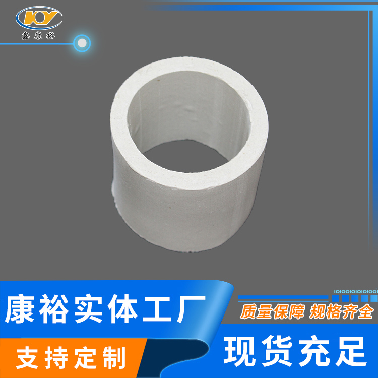 陶瓷拉西環是較早開發的一種散堆填料。陶瓷拉西環的形狀簡單,其高度與直徑尺寸相等。大尺寸的拉西環(100MM以上)一般采用整砌方式規則填充,75MM尺寸以下的拉西環一般采用亂堆方式裝填。