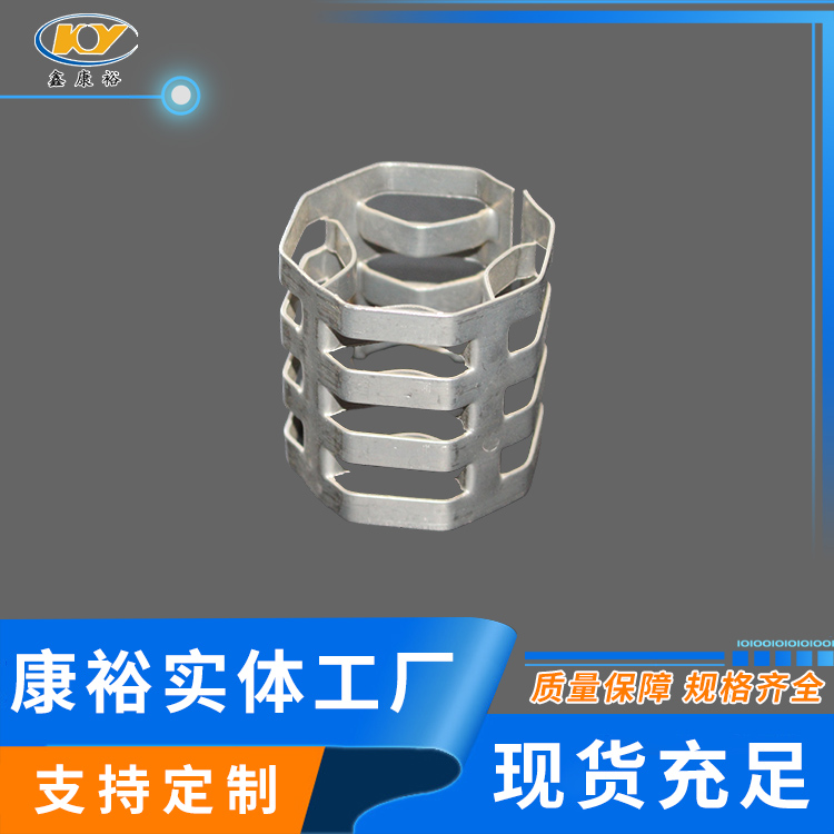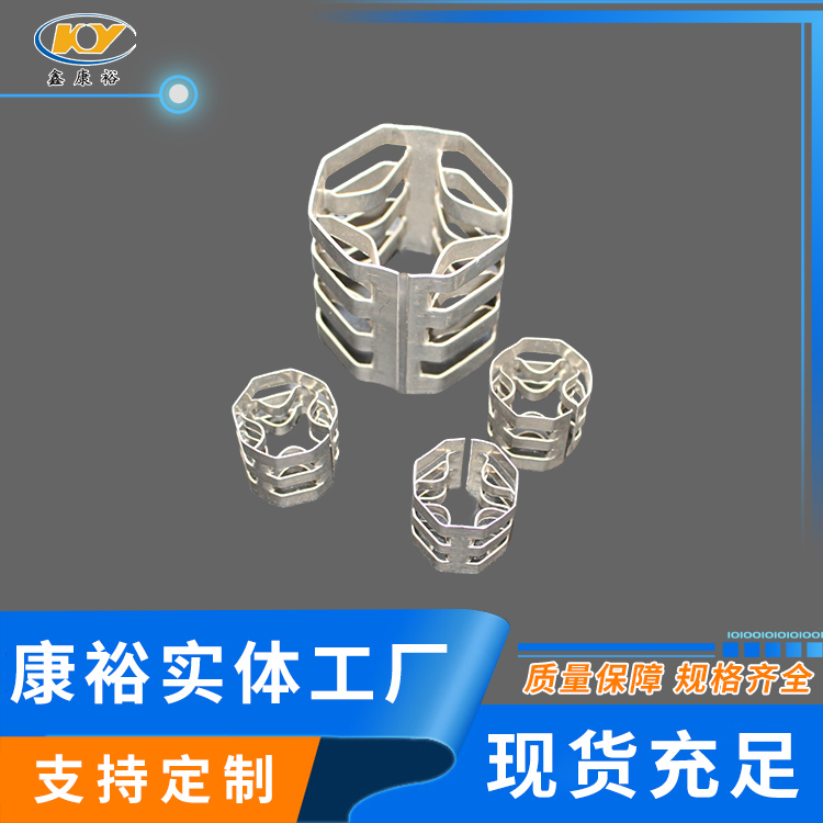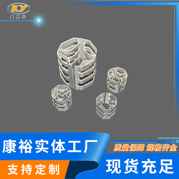 康裕金屬八四內(nèi)弧環(huán)類似花環(huán)開關(guān)的金屬填料,也稱麥勒環(huán)填料。它的特點(diǎn)是環(huán)壁開敞面積大,所以具有通量大、阻力小和傳質(zhì)效率高等特點(diǎn)。