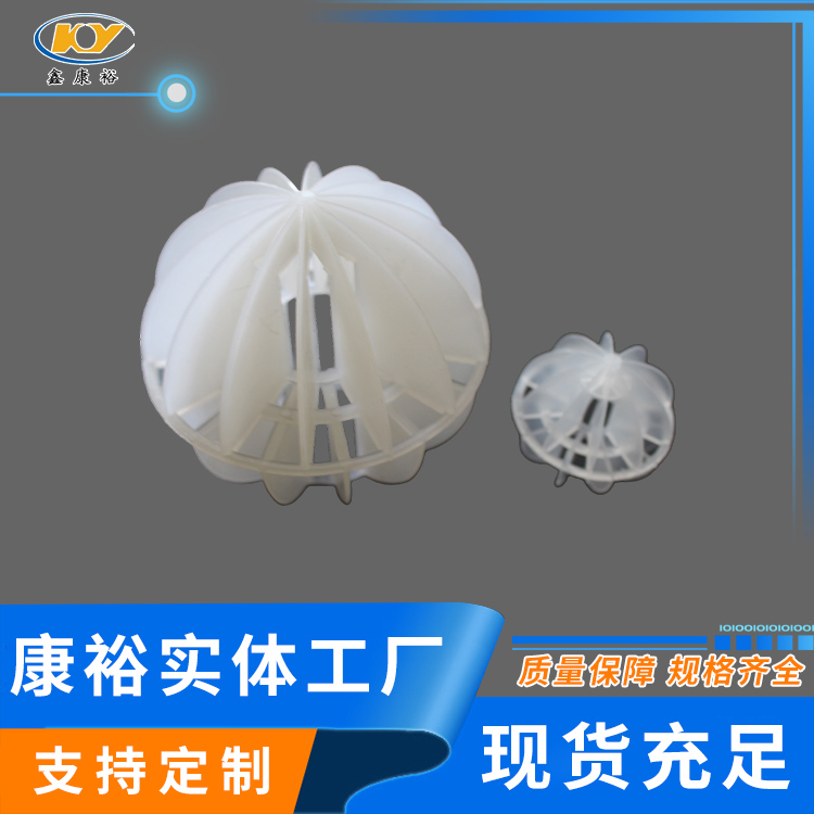 多面空心球廣泛應用于污水處理工程,主要填充冷卻塔,凈化塔中除氯氣、除氧氣、除二氧化碳,脫硫及接觸反應塔等裝置,廢氣吸收塔、酸霧凈化塔等環保設備中。